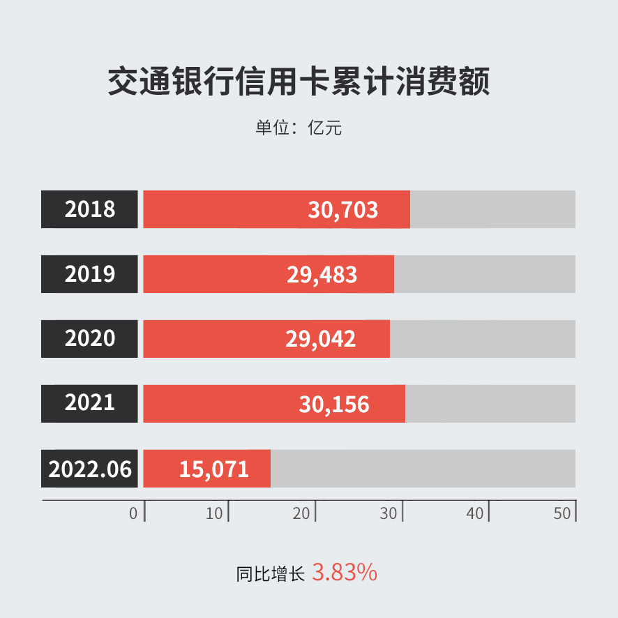 年上半年,交通银行信用卡累计消费额