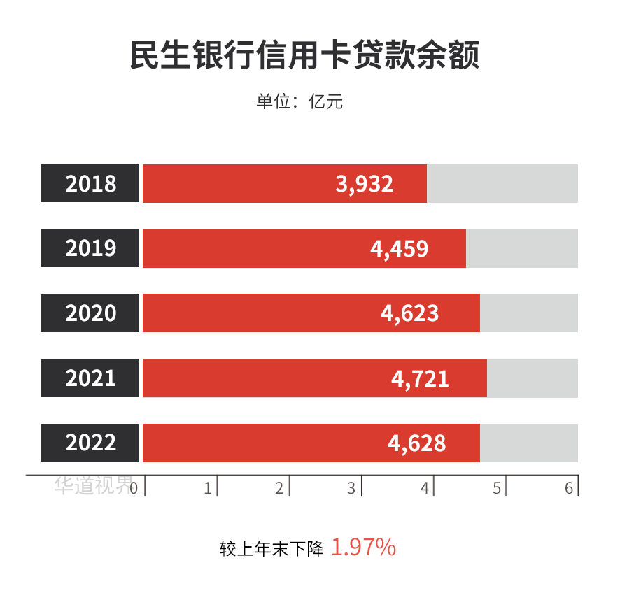 截至报告期末,民生银行信用卡贷款余额为4,627.88亿 元,比上年末下降92.89亿元;