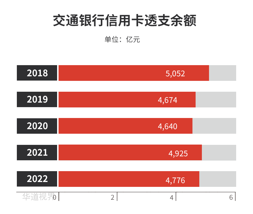 截至报告期末,交通银行信用卡透支余额为4,776.42亿元;