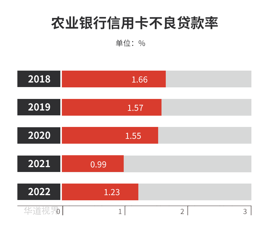 截至报告期末,农业银行信用卡不良金额为79.48亿元,不良率为1.23%;