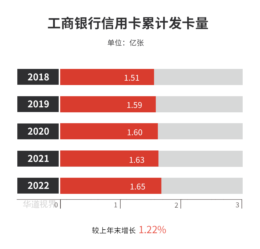截至报告期末,工商银行信用卡累计发卡1.65 亿张,较上年末增长1.22%;