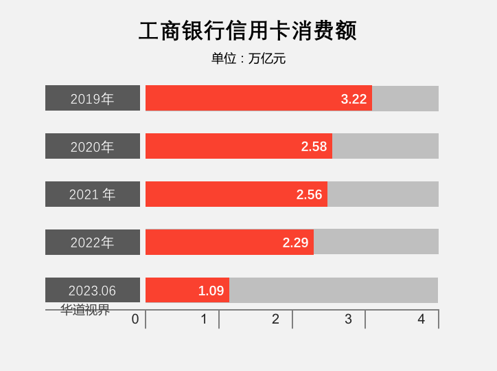 2023年上半年,工商银行卡信用卡消费额 1.09 万亿元;