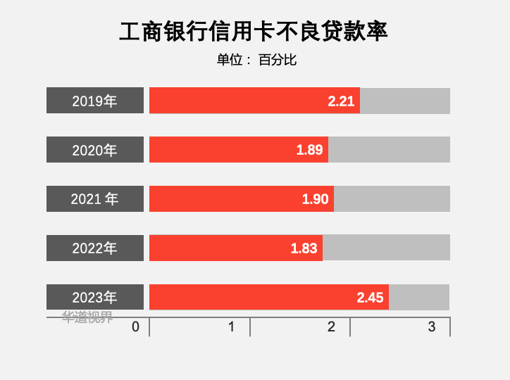 截至2023年末,工商银行信用卡不良贷款为169.01亿元,不良率为2.45%。