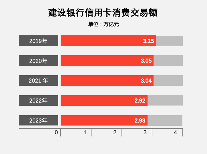 2023年,建设银行信用卡消费交易额2.93万亿元;