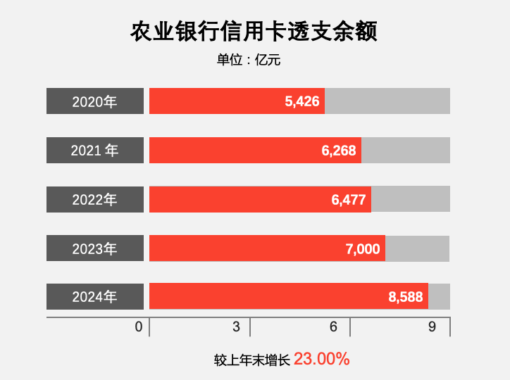 年报|农业银行信用卡2024年透支余额8,588.11 亿元,较上年末增长23%