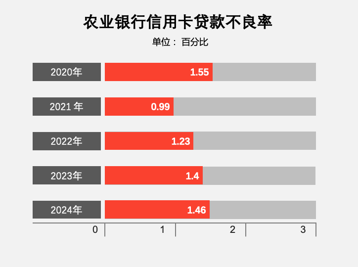 截至2024年末,农业银行信用卡不良率1.46%,较上年末上升0.06个百分点。