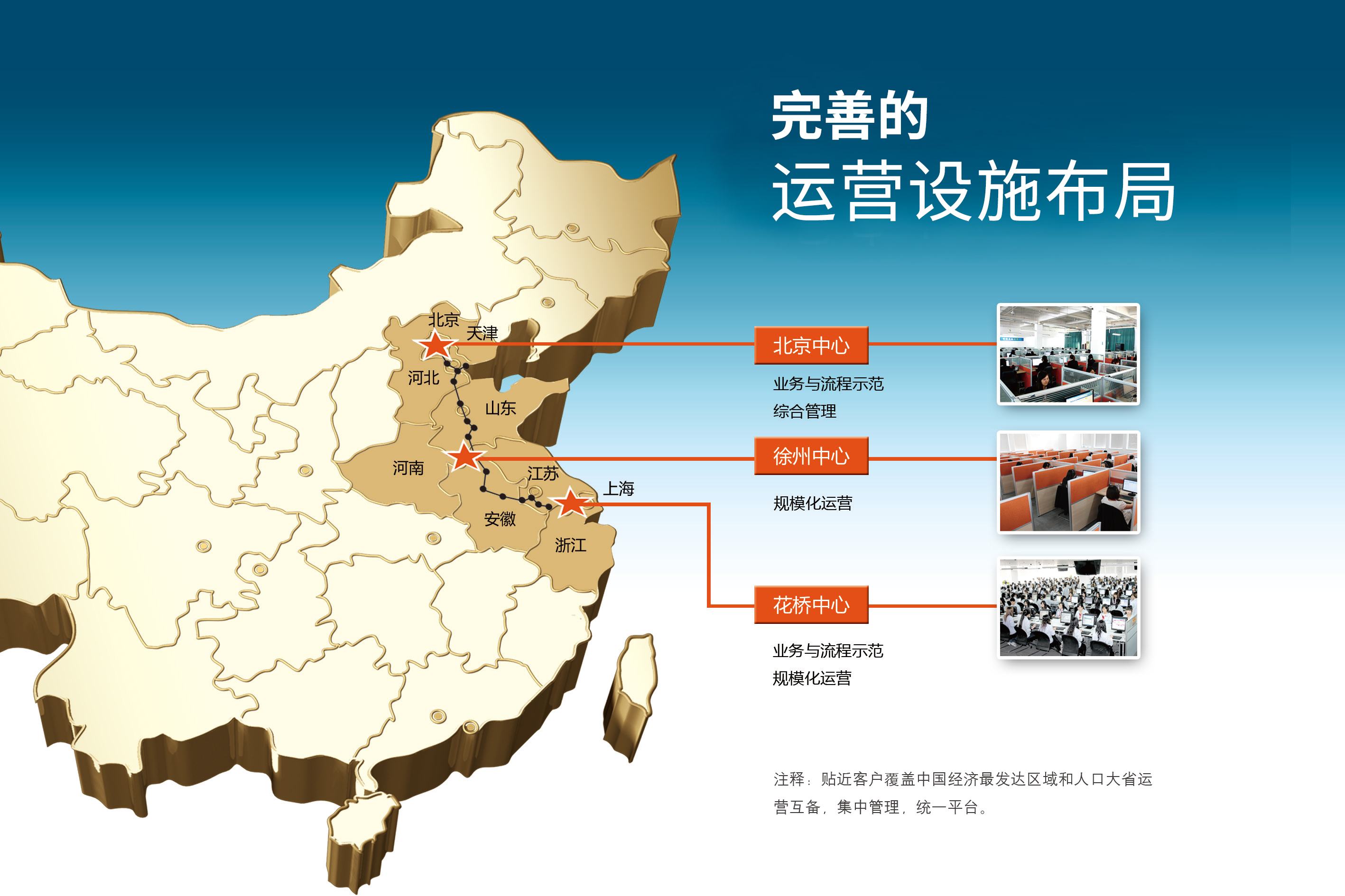 作为自古以来的战略要地,江苏省徐州市地处四省交界,人力资源充沛。在京沪高铁线上,徐州介于北京和上海中间,方便客户现场督导、检查的同时,也利于2138cn太阳集团城实现三地职场的统一管理,实现公司整体在业务运营、人力招聘等多个环节互备,相互依托,满足未来业务快速增长的需要。