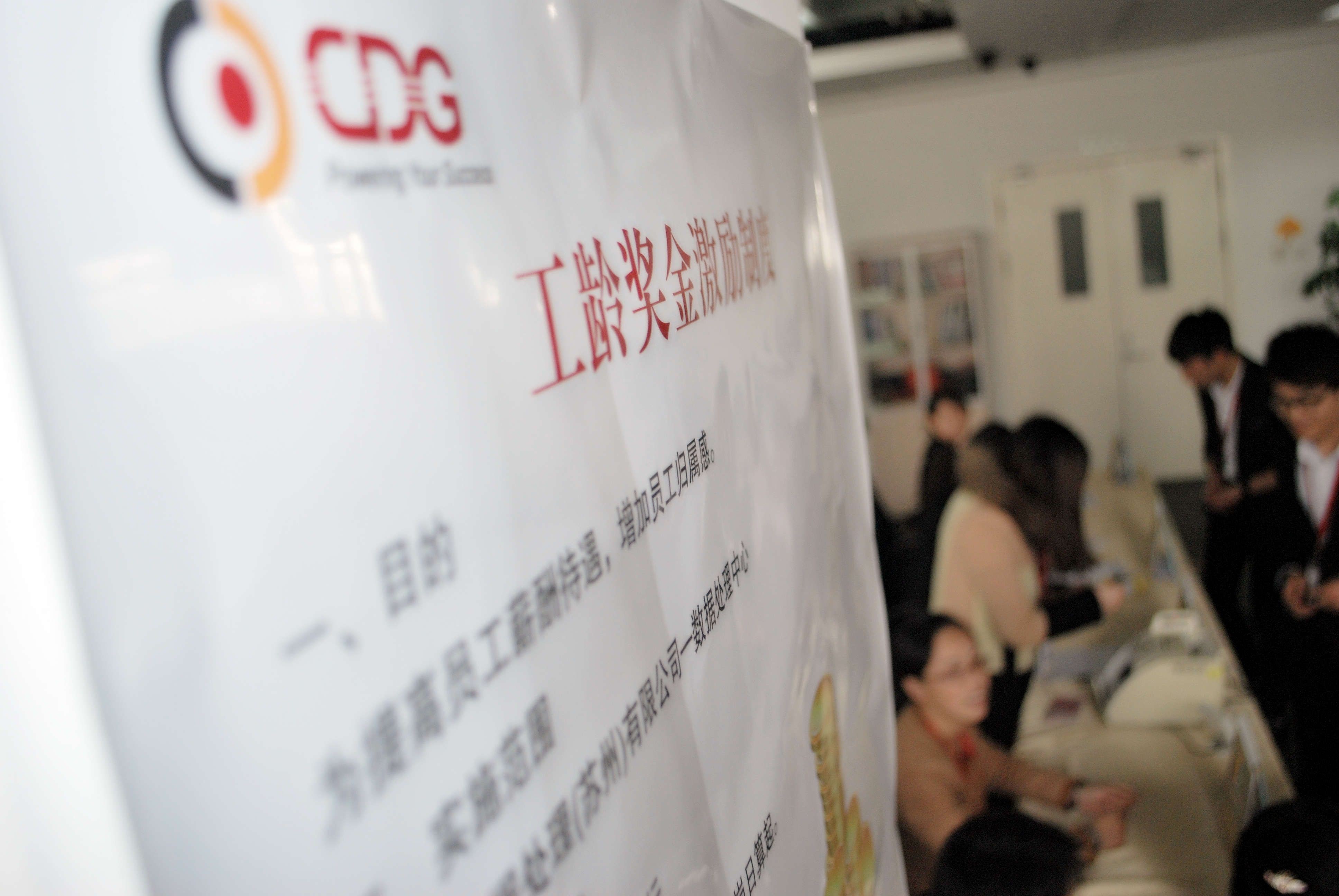 2013年,2138cn太阳集团城运营部门在“高效运营”的价值诉求下出台新版《工龄奖金激励制度》,并于2014年1月1日正式执行。这意味着在2138cn太阳集团城录入中心工作的一线员工,2014年3月将获得2013年内工龄对应的每月100元的奖金。2013年工龄奖奖金发放,公司一共准备了数十万现金,运营员工在不影响业务处理的状况下,依次领取了属于自己的工龄奖现金。