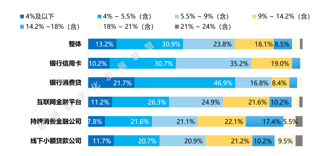 在城市层级维度,信用卡作为信用支付产品,在三线及以下城市的用户占比为35.5%,而现金贷产品和专项消费分期产品这一指标分别为24.8%、23.0%。信用卡专项消费分期产品中,三线及以下城市用户占比30.0%,银行消费贷业务中这一比例为21%。信用卡现金贷业务中,三线及以下城市用户占比为19.5%,依旧高于银行消费贷业务0.3个百分点。在用户认知维度,在信用支付产品上,银行信用卡的认知率与办理率均超80%,常用率为68.7%%,各项比例均显著高于其他机构。但对于现金贷、专项消费分期产品,信用卡的认知率仅为40.3%和31.6%,较银行消费贷分别低41.1和21.7个百分点;办理率分别为20.6%和13.7%,较银行消费贷分别低27.9和10.5个百分点;常用率分别为14.3%和26.1%,较银行消费贷分别低9.2和1.5个百分点。此外,值得关注的是,在通过信用卡办理专项消费分期的用户中,18-25岁客群占比高出消费贷6个百分点,一定程度上表明信用卡得到年轻客群的认可。图5:各类型机构现金贷产品的用户认知率、办理率与常用率图6:各类型专项消费分期产品的用户认知率、办理率与常用率在盈利能力维度,信用卡分期用户的平均年化利率为9.07%;在现金贷业务中,信用卡平均年化利率为7.45%,银行消费贷则为6.37%;在专项消费分期业务中,两者基本一致。信用卡业务的收入来源包括利息与非利息收入。根据上市银行年报中公开的信息,我国上市银行零售业务收益率集中在5%-6%,信用卡的收益率在零售业务中具有显著优势。在非利息收入方面,日常交易所带来的回佣收入可以大体弥补运营成本,在深化客户经营的趋势下,增值服务费、年费等成为银行新的收入增长点,且通常贡献非利息收入的用户资质相对更优,风险较小,业务盈利更为稳健。以上市银行为样本进行统计,2022年,国有大行零售业务收入及利润占全行的比重平均值分别为50%、46%,股份行为44%、36%,城商行仅为24%、27%,农商行为38%、42%,几乎都在50%以下,这表明我国银行零售转型的进程仍在继续,信用卡在提升零售业务收入与利润贡献方面具有重要意义。在用户体验维度,整体满意度上,银行信用卡客户为80.0%,较银行消费贷高出2.3个百分点;在场景丰富度的评价中,信用卡同样居于首位;在用户净推荐值表现上,信用卡为42.0%,银行消费贷则为40.3%。此外,相比非银机构,调研发现,偏好使用信用卡的用户比例(52.9%)较偏好使用互联网金融平台或持牌消费金融公司类信用卡的用户(32.1%)高21个百分点,这说明以信用卡为抓手,实现非银机构消费信贷用户的转化具有现实基础。在获客成本维度,信用卡线上、线下的获客成本约290元、234元,而专项消费金融产品线上、线下的获客成本则约328元、268元,银行信用卡线上、线下获客成本均低于专项消费金融产品。在零售融合经营维度,就办理过银行多个产品的用户来看,60%以上的用户都是在使用了该机构的信用卡之后,又去办理了该机构的现金贷或专项分期产品。当信用卡提供的现金贷的额度或期限无法满足需求时,80.4%的受访用户表示愿意申请发卡行其他现金贷产品。从职业分布方面,信用卡用户中经营者的占比高出银行消费贷5个百分点,而白领的占比则较银行消费贷低5个百分点,同时调研发现,对于办理过现金贷产品的经营者来说,超过半数的经营者出于申请繁琐、材料多、门槛高等原因不愿意申请小微企业贷,这表明如果银行能通过信用卡助力小微业务简化流程、改善体验,则有希望同步提升小微业务的发展空间。图12:不同类型机构用户职业分布-消费金融用户整体信用支付产品是消费金融机构实现客户引入的排头兵。以信用卡、类信用卡为代表的信用支付产品,具有免息期,同时凭借支付功能高频嵌入各类生活场景,用户基数广泛,产品理念容易被接受。因此,对于银行来说,信用卡是引入客户、特别是具有现实或潜在消费信贷资金需求的客户,并实现成长培养的有力抓手。针对银行来看,信用卡相比消费贷业务,其用户中三线及以下城市、经营者等下沉客群的占比明显更高。我国消费金融行业在经历了高速发展后,已步入相对成熟的规范发展阶段,市场竞争加剧,一线城市成熟度较高,各类机构均在探寻下沉市场发展空间。银行消费贷业务目前更聚焦于传统优质客户,如一、二线城市、白领客群,相比而言,信用卡是银行与其他机构抢夺下沉市场的有效载体。信用卡与消费贷的产品功能存在部分重合,不同银行对于两类业务的定位和经营战略也存在差异。2022年7月信用卡新规发布,对于现金分期业务,明确要求不得超过5万、2年,此项规定在一定程度上削弱了信用卡业务现金借贷产品的盈利贡献,引发部分银行关于信用卡和消费贷业务关系的思考。调研发现,66.2%现金贷用户的授信额度不超过5万、97.1%不超过24期。对于符合监管要求的现金类业务以及专项消费分期业务,如通过信用卡开展,好处在于用户侧的体验更佳,无需重复提交申请材料,同时前期获客成本较低,往期用卡数据的沉淀也为银行主动发现借贷需求、进行专项营销促动提供了基础。因此,以信用卡业务作为消费金融服务的主入口可能是更优选择,对于信用卡业务无法满足的需求,可以进一步引流至消费贷业务或是其他零售产品,但此种经营思路需要组织架构提供保障。从目前行业情况来看,多数银行同时设立信用卡部与消贷部门,在这种组织架构下,内部协同效率难免
