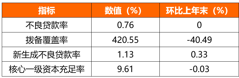 不良贷款率0.76%,新生成不良率1.13%