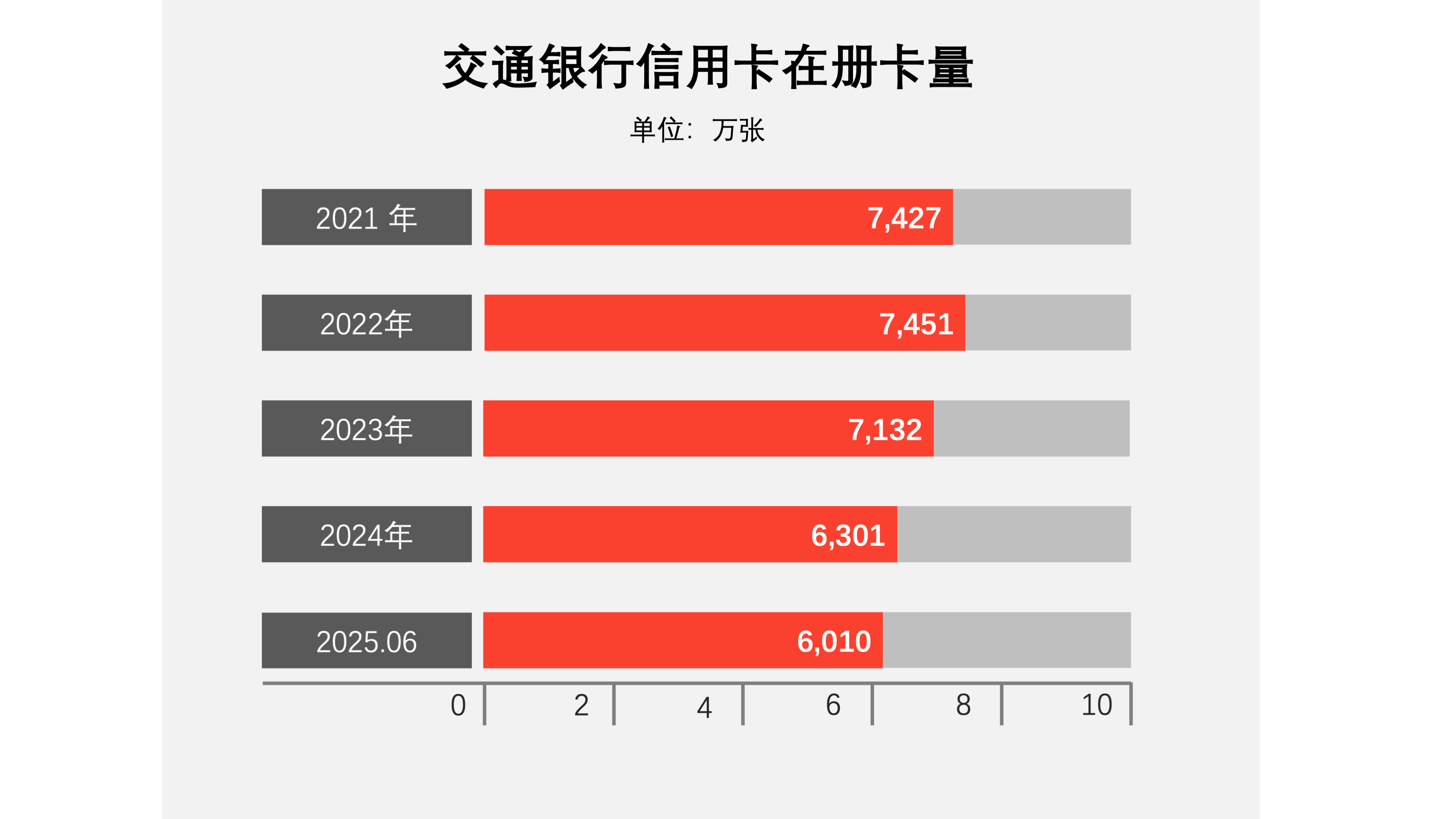 截至报告期末,交通银行在册卡量 6,009.85 万张;