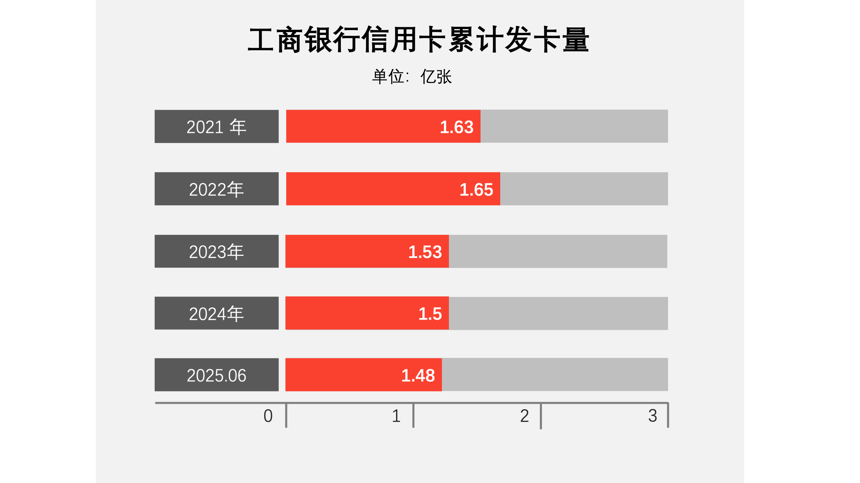 截至报告期末,工商银行累计发卡量1.48亿张;