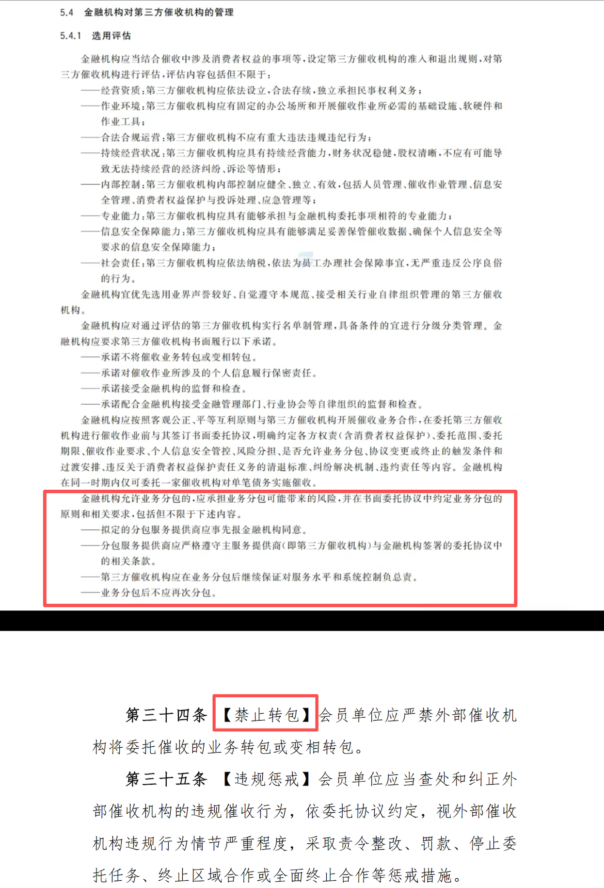 《2025催收国标》提到金融机构允许业务分包的,应书面约定分包原则和要求,而《2026催收指引》中明确禁止催收机构将业务转包或变相转包;