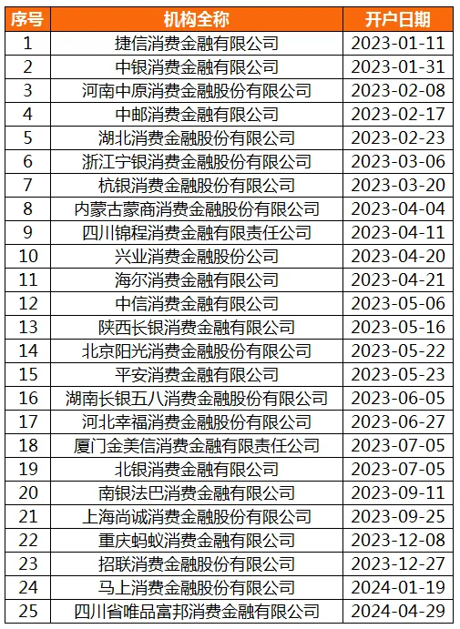 2023年,不良贷款转让试点扩围,将消费金融公司纳入试点范围。2023年1月,捷信成为第一个开立不良贷款转让业务账户的消金公司,之后消金公司陆续开户,截至2024年4月30日,在31家持牌消金中,已有25家消金公司开设了不良贷款转让业务账户。