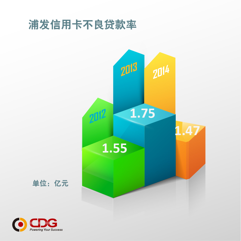 报告显示,浦发银行信用卡不良贷款率在经历了2013年小幅的上升之后,2014年实现了下降(见图四)。
